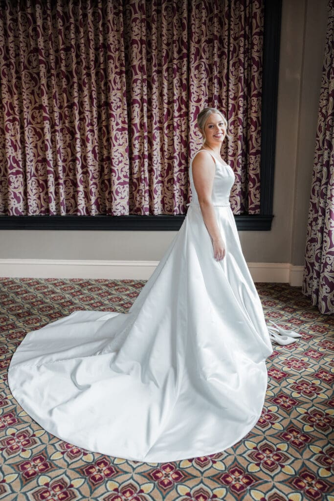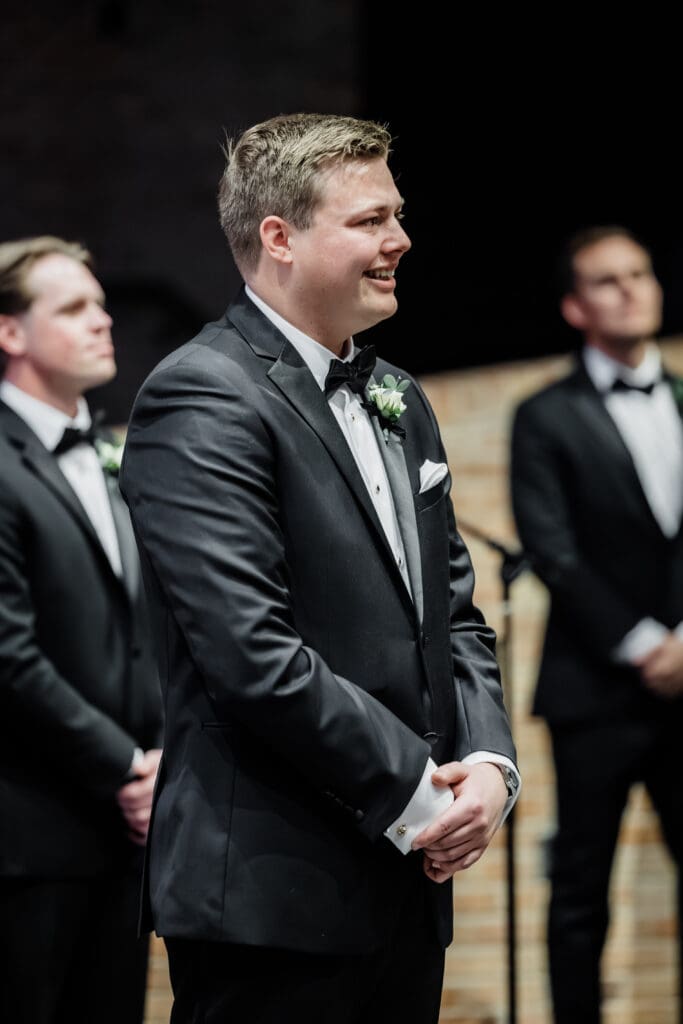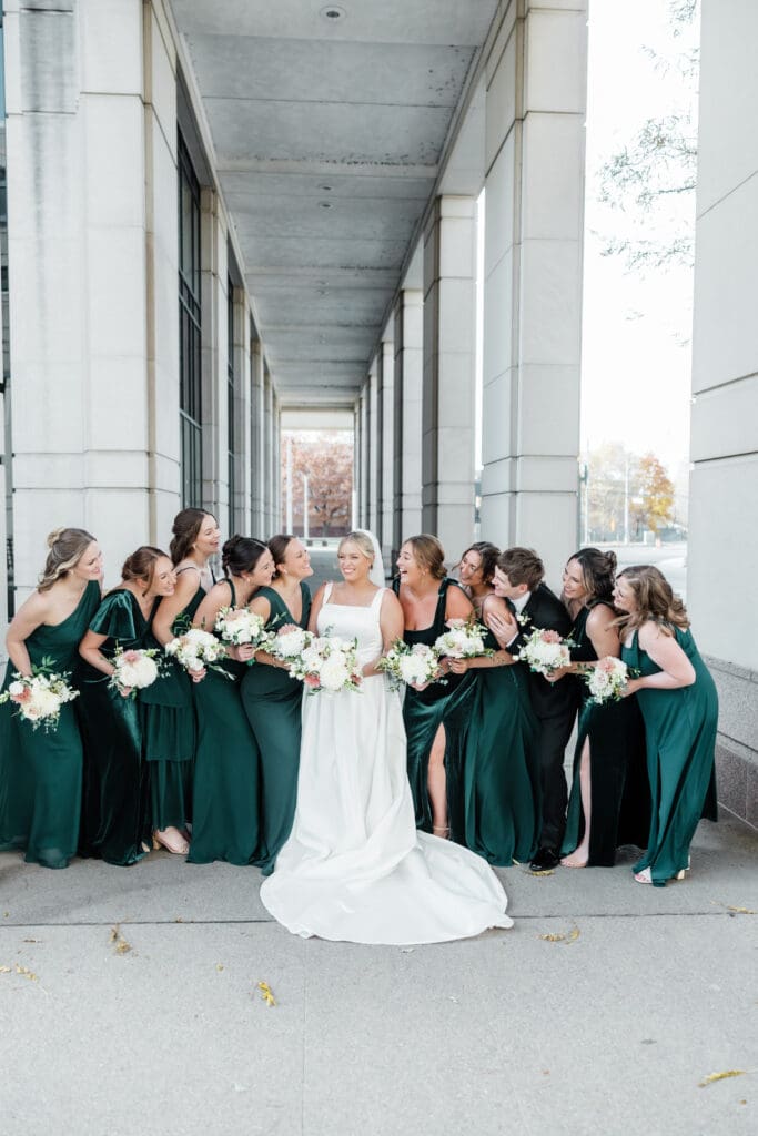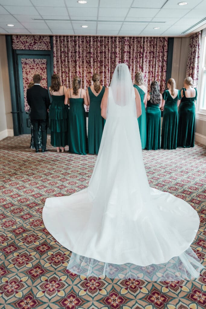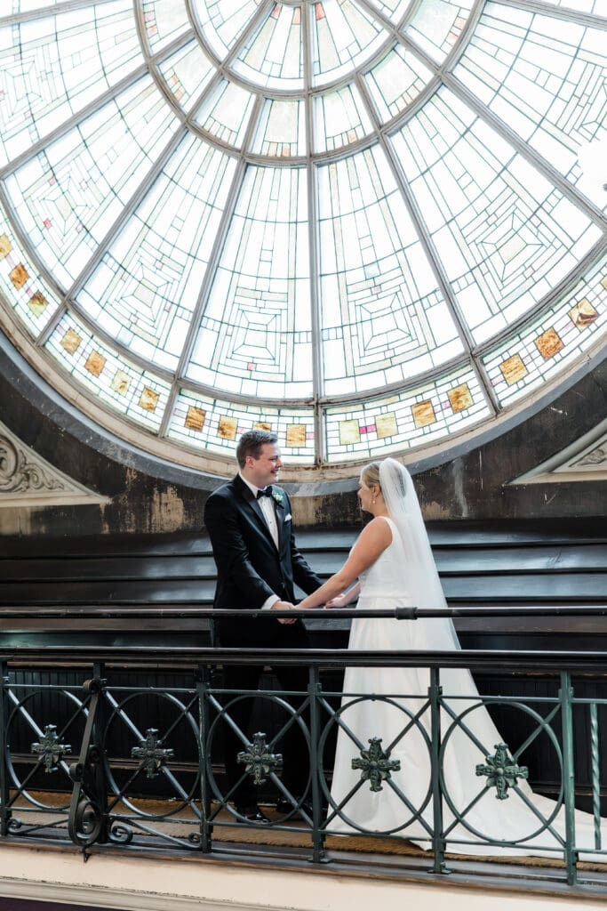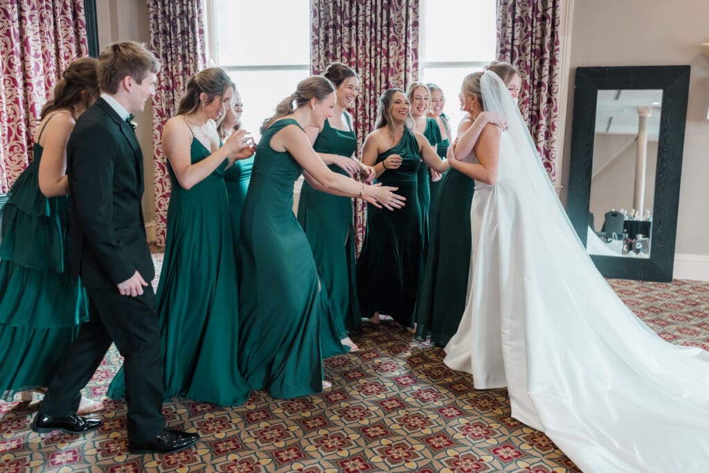 The first look train began with Madeline revealing her final look to her bridesmaids (and her brideman!)—such a fun, joy-filled moment. Then she shared the sweetest first look with her dad in the gorgeous Union Station bar area. Cue the tissues.