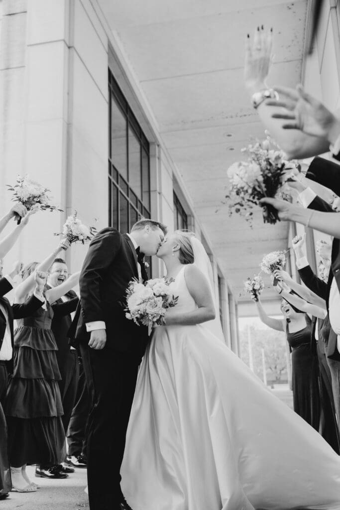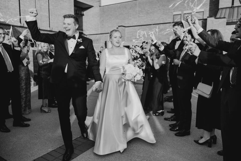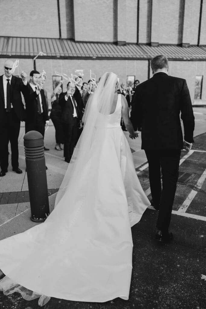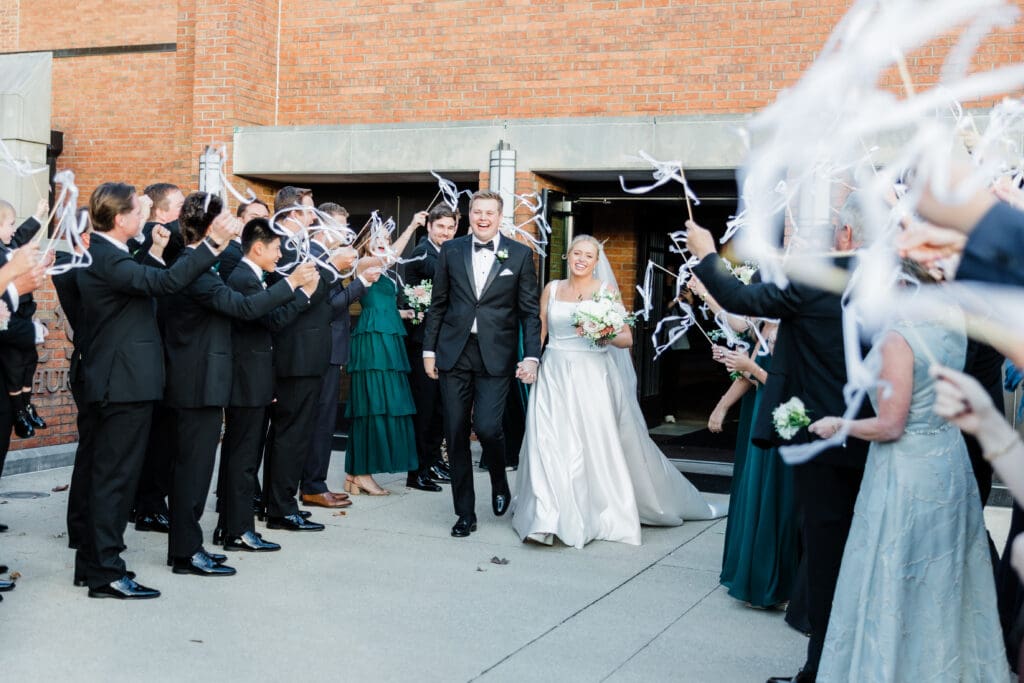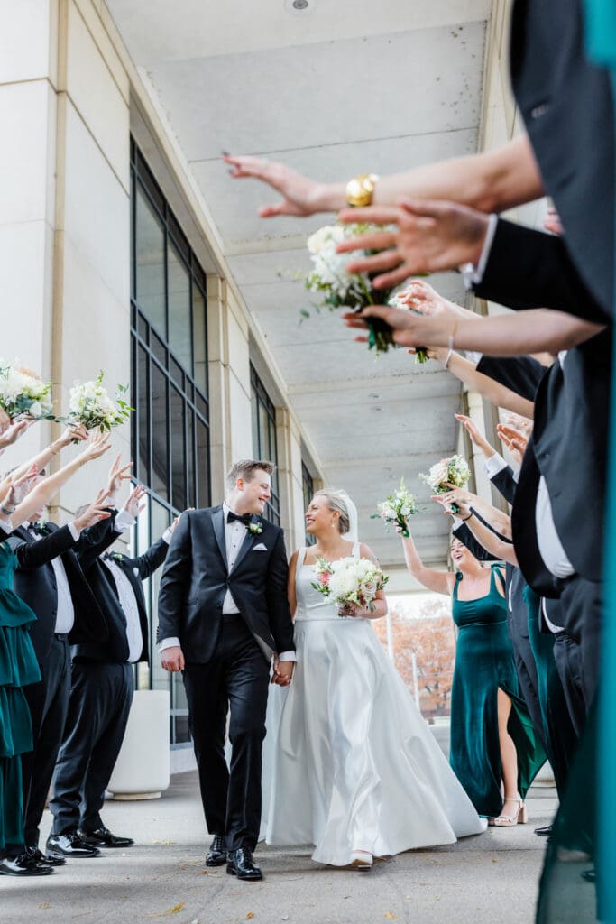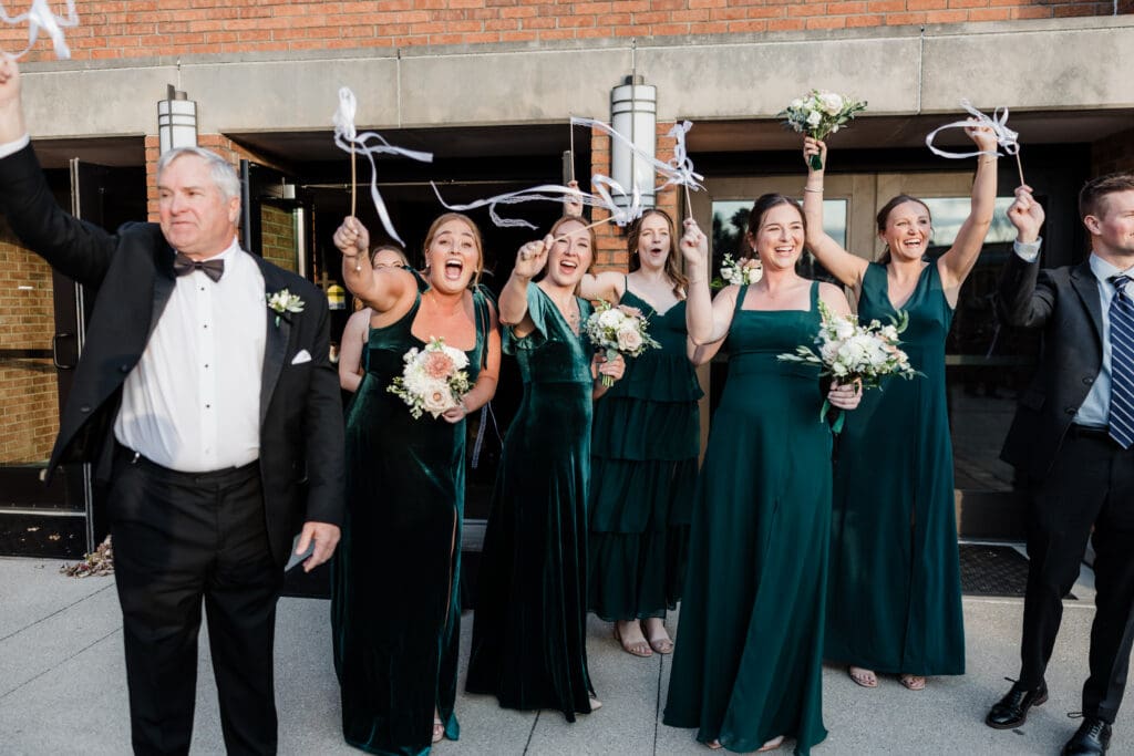 After a sweet ceremony, guests spilled outside into the crisp November air for a ribbon exit. Then it was family photos and back onto the trolley for cocktail hour!