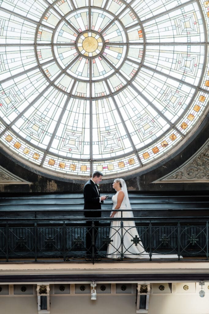 Then came the big one: Madeline & Jairon’s private first look, followed by reading their vows alone in front of the stained glass windows. Just the two of them, soaking it in. It was beautiful!