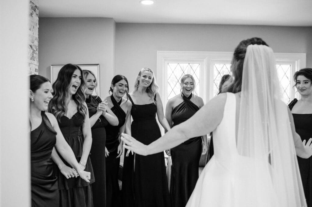 Before seeing Mike, Maddy shared a first look with her bridesmaids …a sweet, emotional moment filled with happy tears, hugs, and so much excitement as her girls saw her in her dress for the first time.